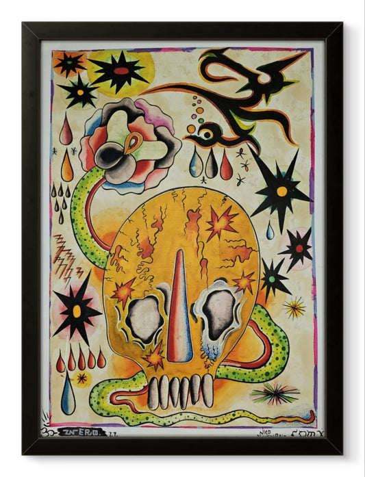 Descubre la colección exclusiva de pinturas originales y prints de Pinche Wero, artista visual en la Ciudad de México. Cada pieza refleja una fusión única de estilos y técnicas, con influencias de lo surrealista y lo cotidiano. Todas mis pinturas son hechas a mano y están diseñadas para conectar con tu espacio y con tu propio sentido artístico.
