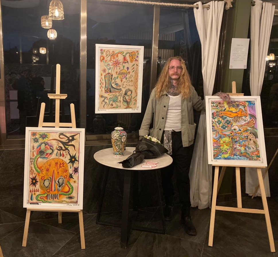 En junio del 2023, tuvo mi primera exposición individual en estudio de tatuajes icónico de la CDMX, Sigue Sigue Sputnik, presentando más de 50 pinturas.